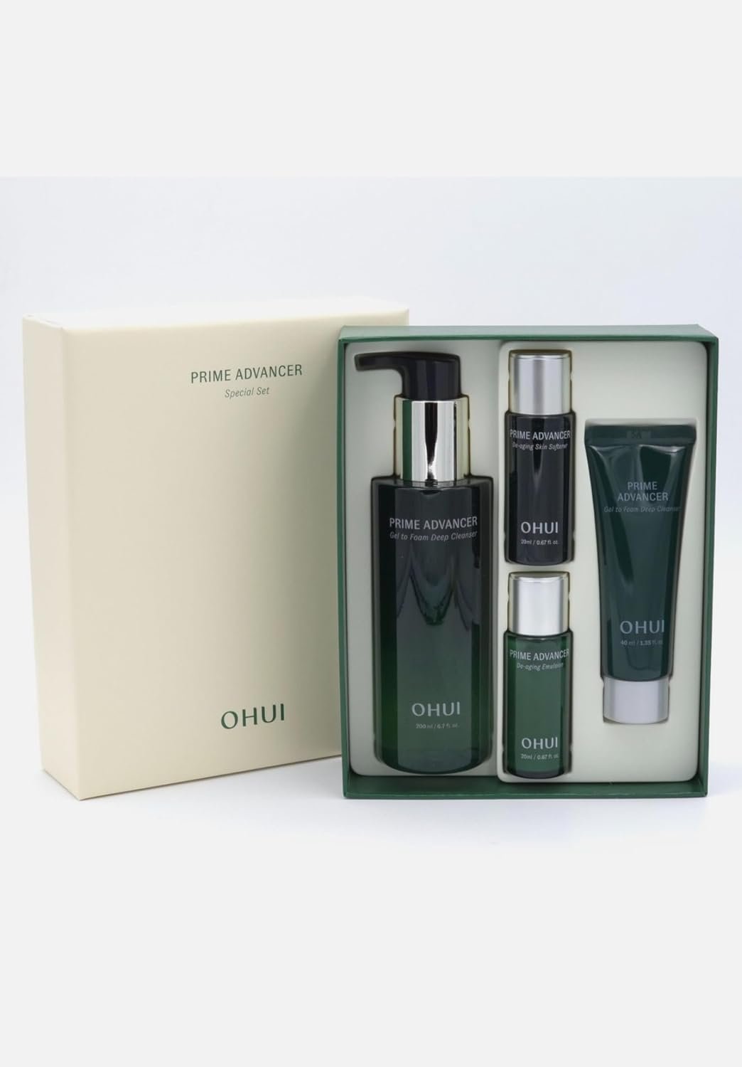 Elevate your skincare routine with the O HUI Prime Advancer Gel to Foam Deep Cleanser 4 Pcs Special Set, a luxurious collection designed to deeply cleanse, hydrate, and prepare your skin for subsequent treatments. This set is part of OHUI’s esteemed Prime Advancer line, renowned for its anti-aging properties and skin-enhancing benefits.
