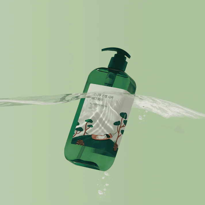 Round Lab’s Pine Cica Calming Body Wash is a soothing solution for body skin concerns, made from sustainably harvested Pinus Densiflora leaves through a cold ultrasonic extraction process that preserves their soothing benefits.