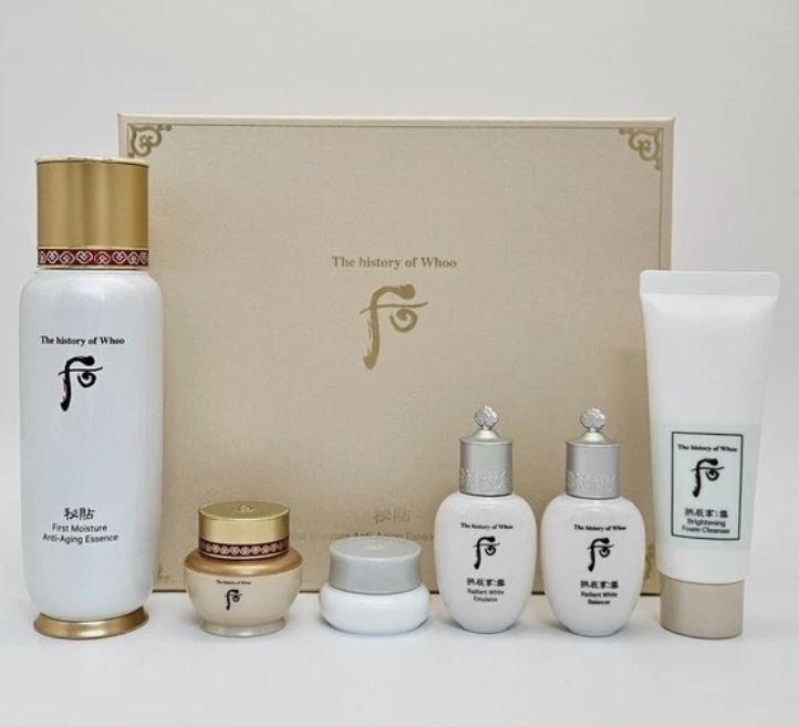 The History of Whoo Bichup First Moisture Anti-Aging Essence 130ml Special Set is a limited-edition skincare kit featuring the full-size First Moisture Anti-Aging Essence, which is designed to be the first step of your skincare routine. The essence works to boost skin’s circulation and enhance the absorption of subsequent products.