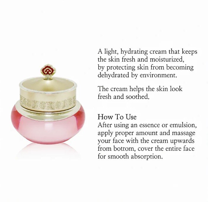 Formulated with the signature Cheong-gi-iksudan herbal complex, this intensive cream helps soothe irritation, restore comfort, and promote a healthy glow while improving skin smoothness and elasticity. With continued use, skin feels softer, calmer, and visibly more radiant — especially beneficial for dry or moisture-depleted skin types. This highly concentrated moisturizing cream helps provide and retain moisture leaving your skin feeling renewed, soft and non-greasy. Infused with Lotus, which is rich in antioxidants to help brightens and revitalizes weary skin.